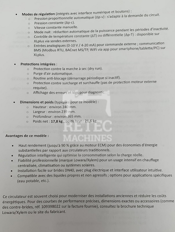 Caracteristiques - Pompe LOWARA ECOCIRC XL 40-180 F - No. 1